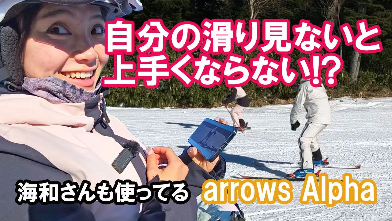 【スキー上達はスマホで】滑りを観て、課題やポイントその場で修正するセルフチックが人気。話題のAIスマホ「arrows alpha」をトップスキーヤーが雪上テスト。スキーヤー海和俊宏、徳竹剛、高橋和花菜